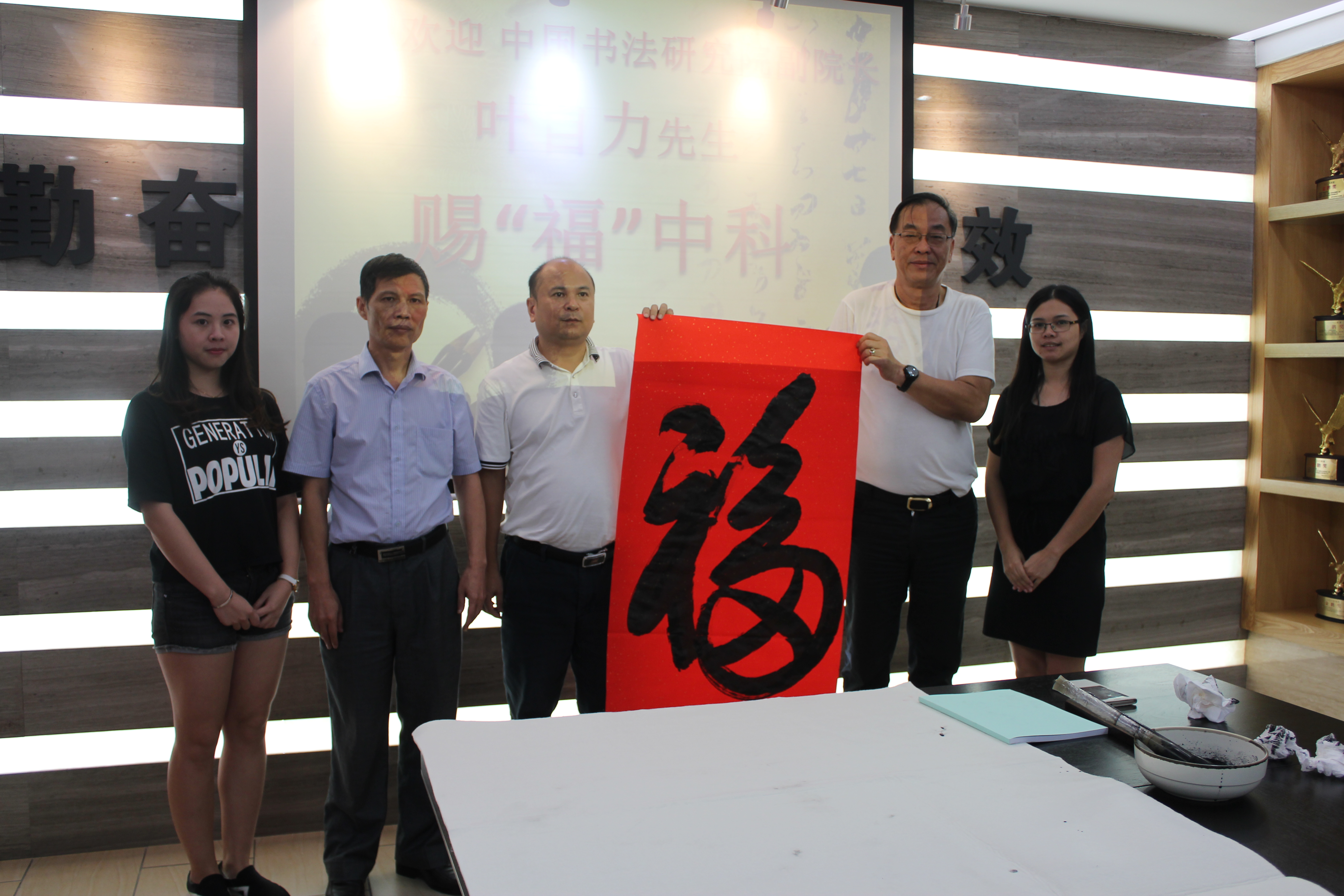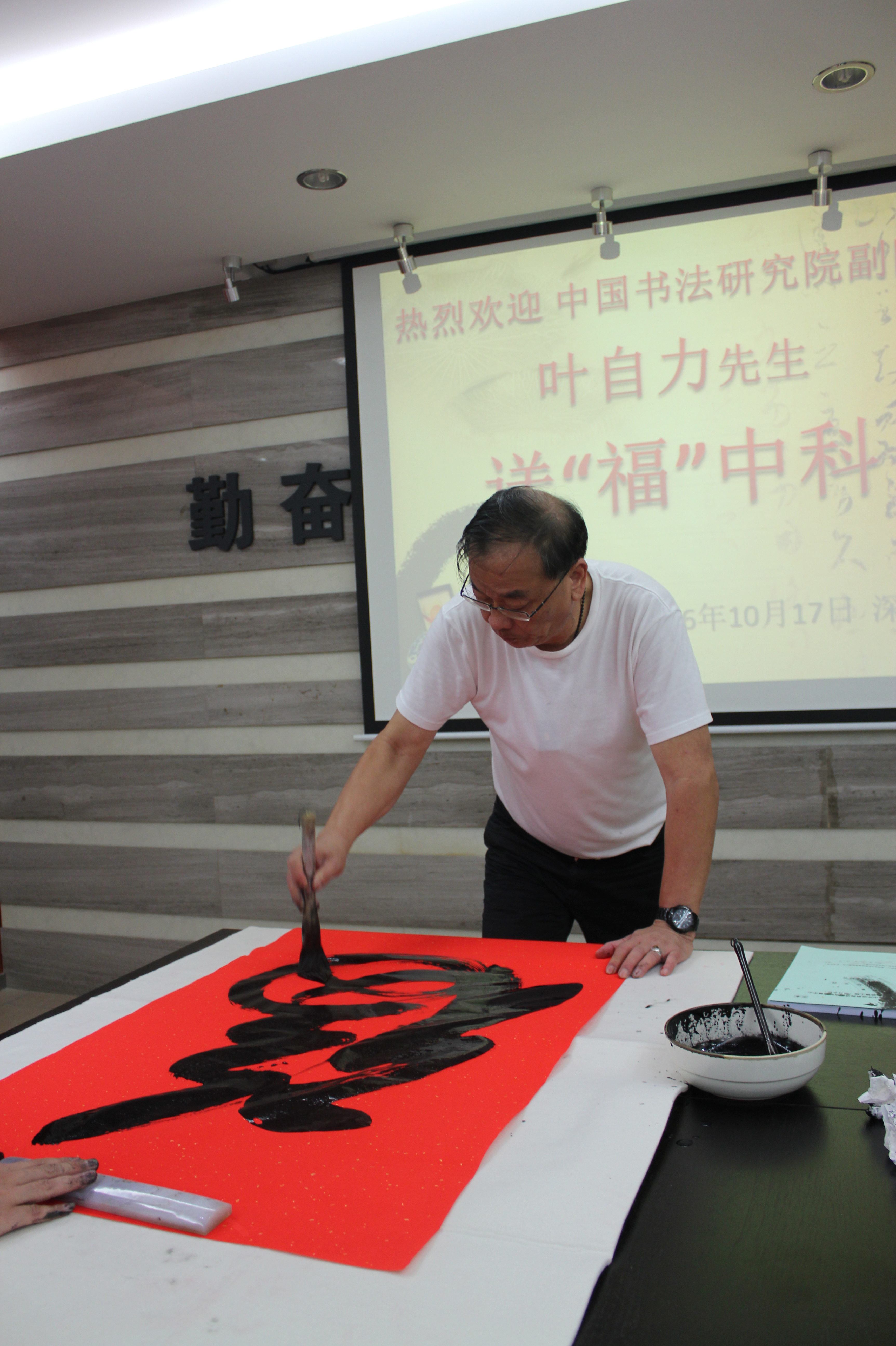 10月17日下午,中國書法研究院副院長葉自力先生來我司考察訪問,中科建設集團常務副總及公司員工予以熱情接待。考察期間,葉自力先生激情飽滿地為公司揮毫潑墨,送“福”中科。
